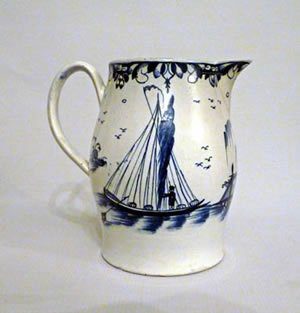 The other side of the jug is painted with a sailing ship.