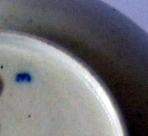 The underside of the saucer showing a painter’s mark of 3